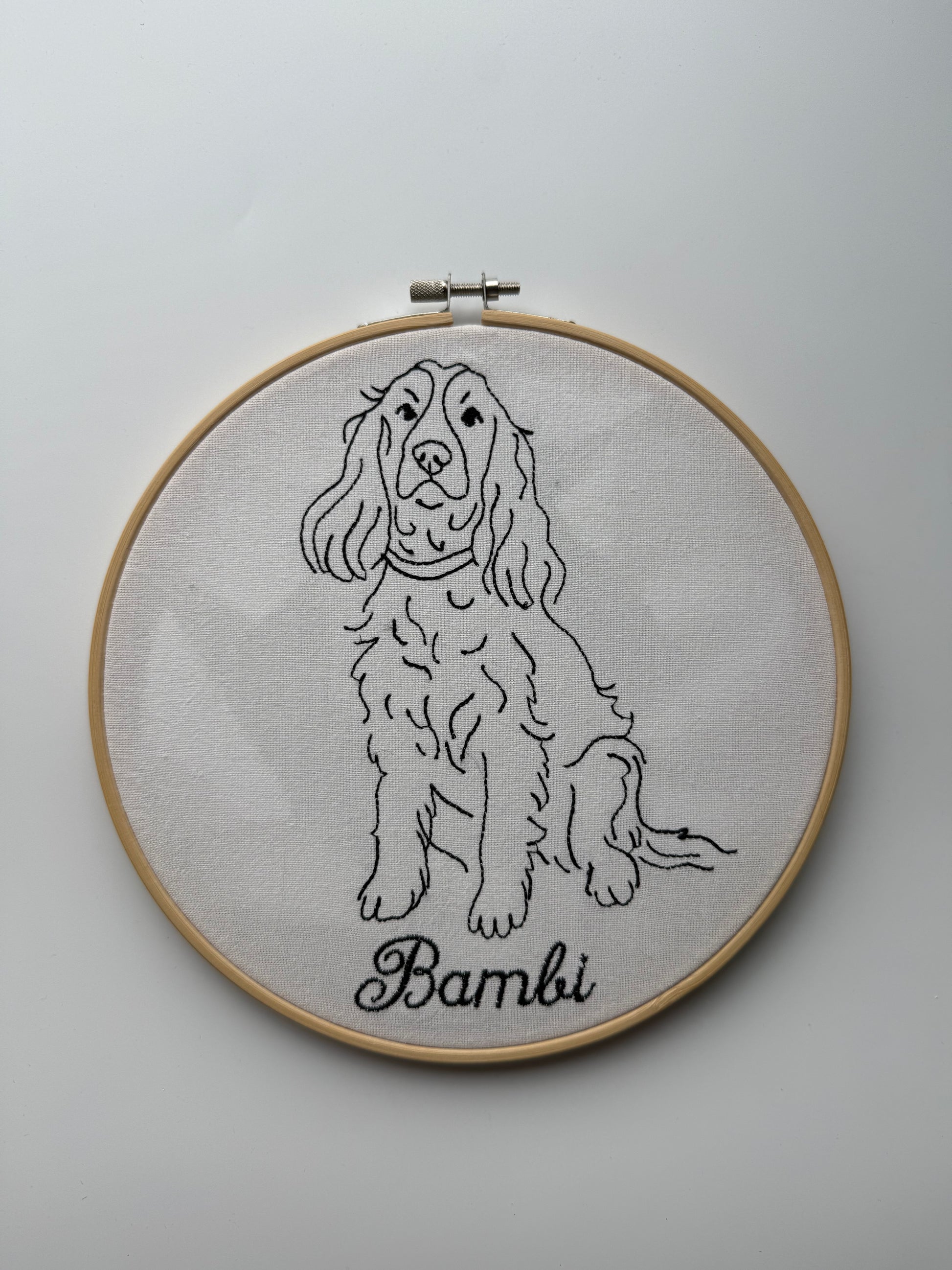 Last opp et bilde, og vi forvandler det til en elegant strektegning – brodert på gjenbruksstoff i 100% bomull, med din valgte trådfarge og stoffvariant. Perfekt som en personlig gave til den som har alt, eller som et unikt minne til deg selv.