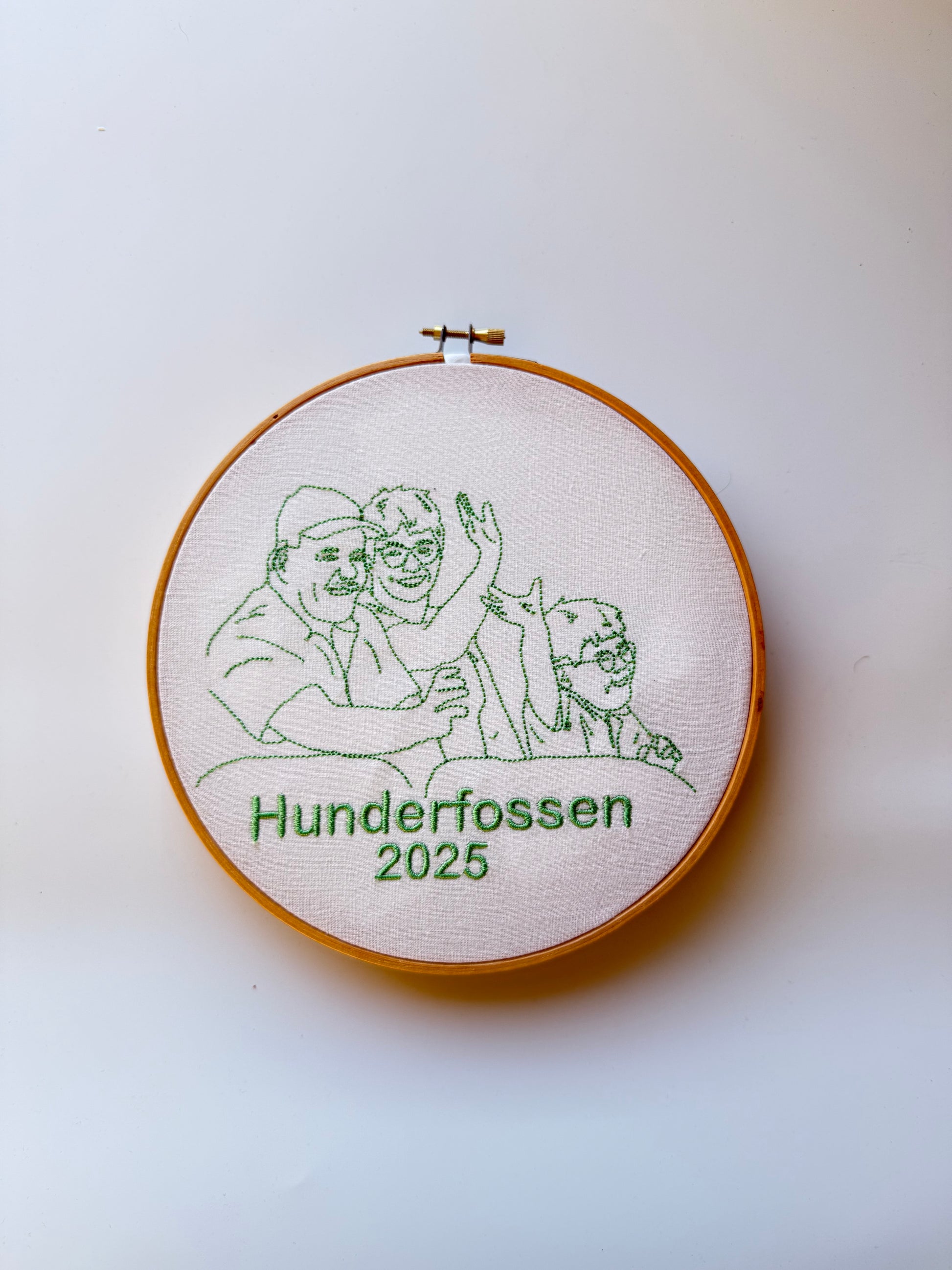 Her kan du få et broderi av et bilde som inneholder 3-4 personer/ personer og dyr. Du få også en dato, navn eller en kort tekst brodert på, alt etter ditt valg.