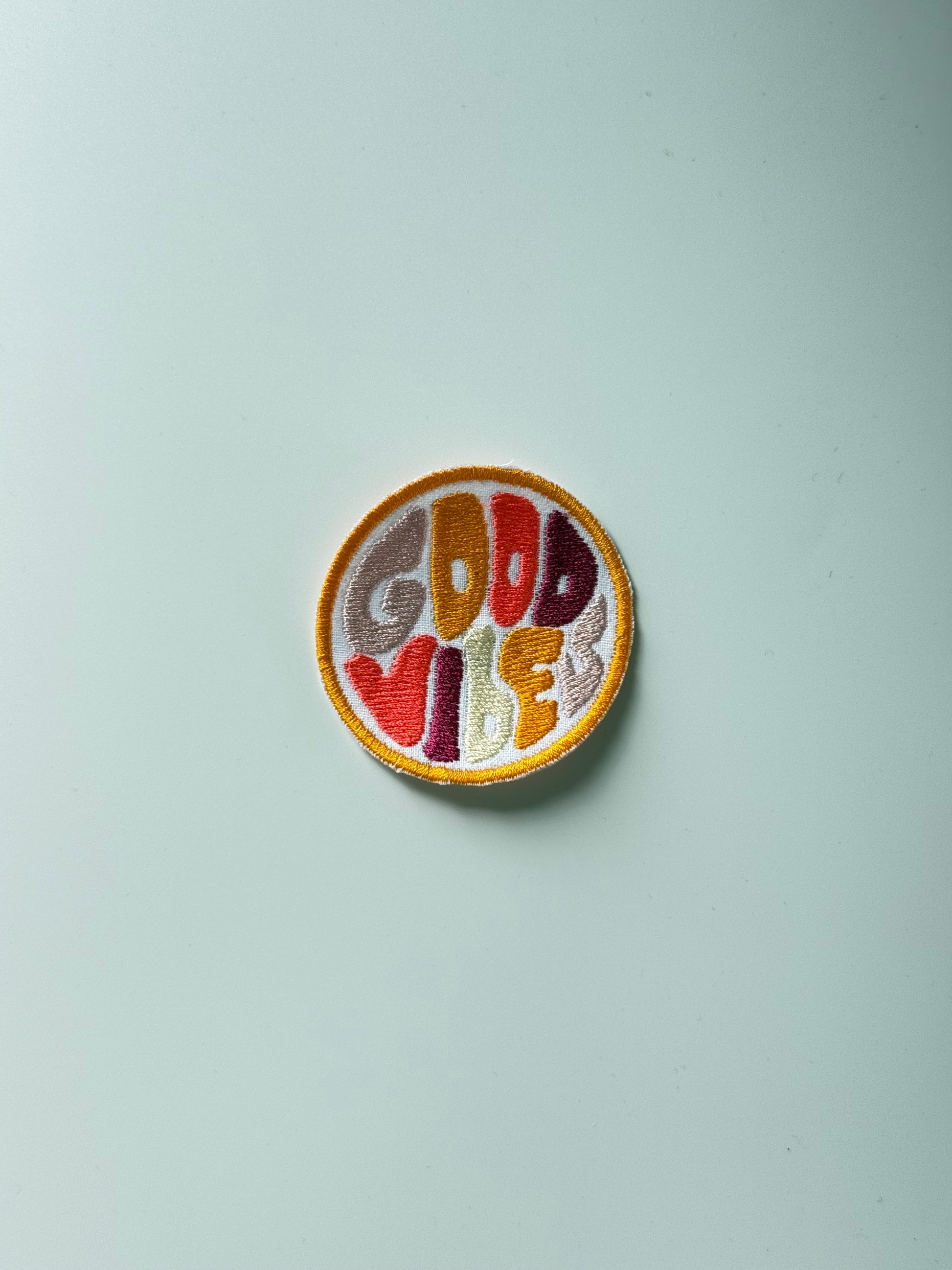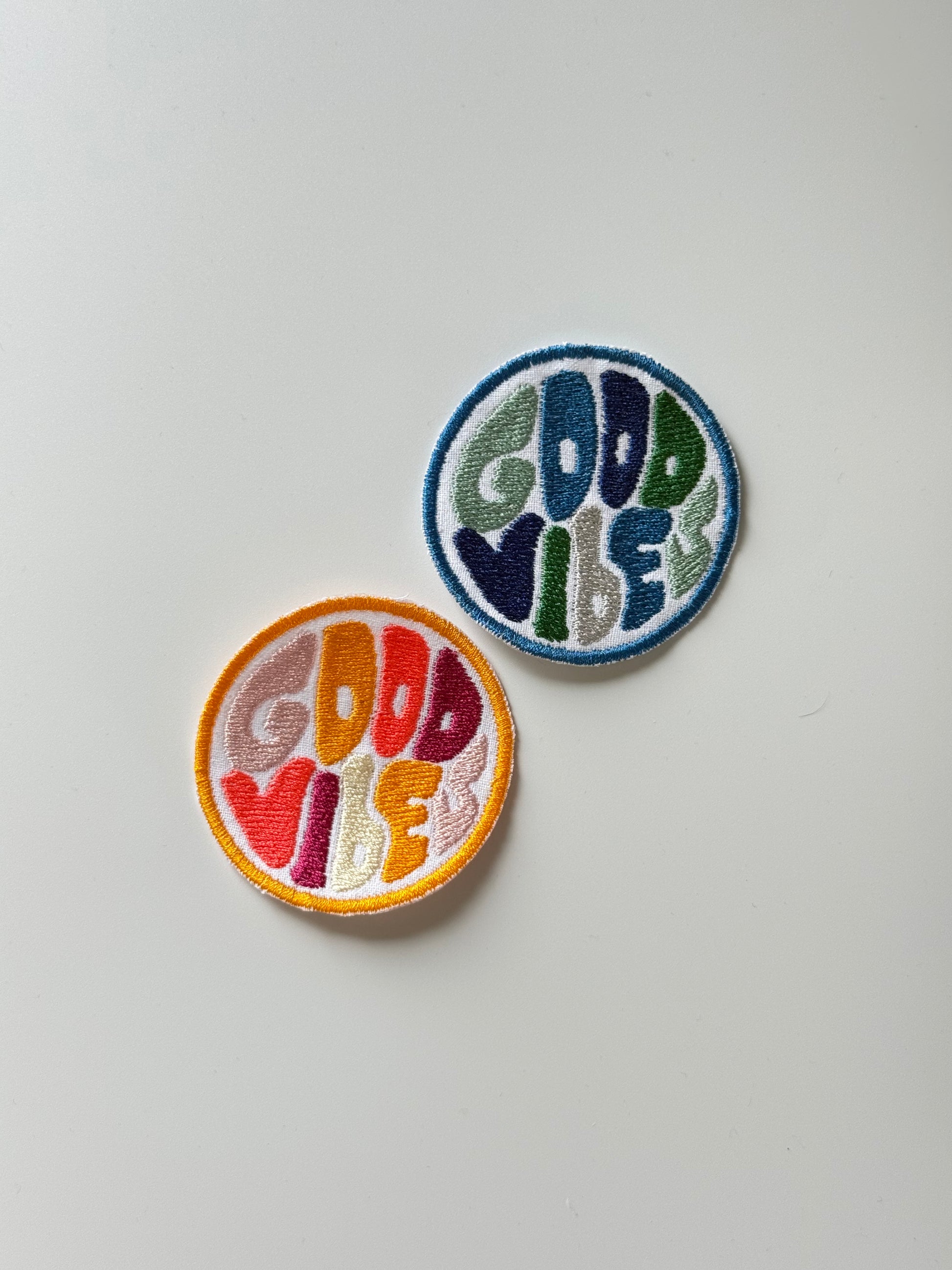 Gi nytt liv til klærne dine med dette broderte strykemerket med teksten «good vibes» i vakre gule og rosa toner. Strykemerket er laget på gjenbrukstekstil i 100% bomull, og er perfekt både som pynt og som en kreativ løsning for å dekke over små hull eller flekker. Baksiden har et varmeaktiverende lim som gjør det enkelt å feste på klær eller tekstiler du allerede har – og dermed bidra til et mer bærekraftig forbruk.