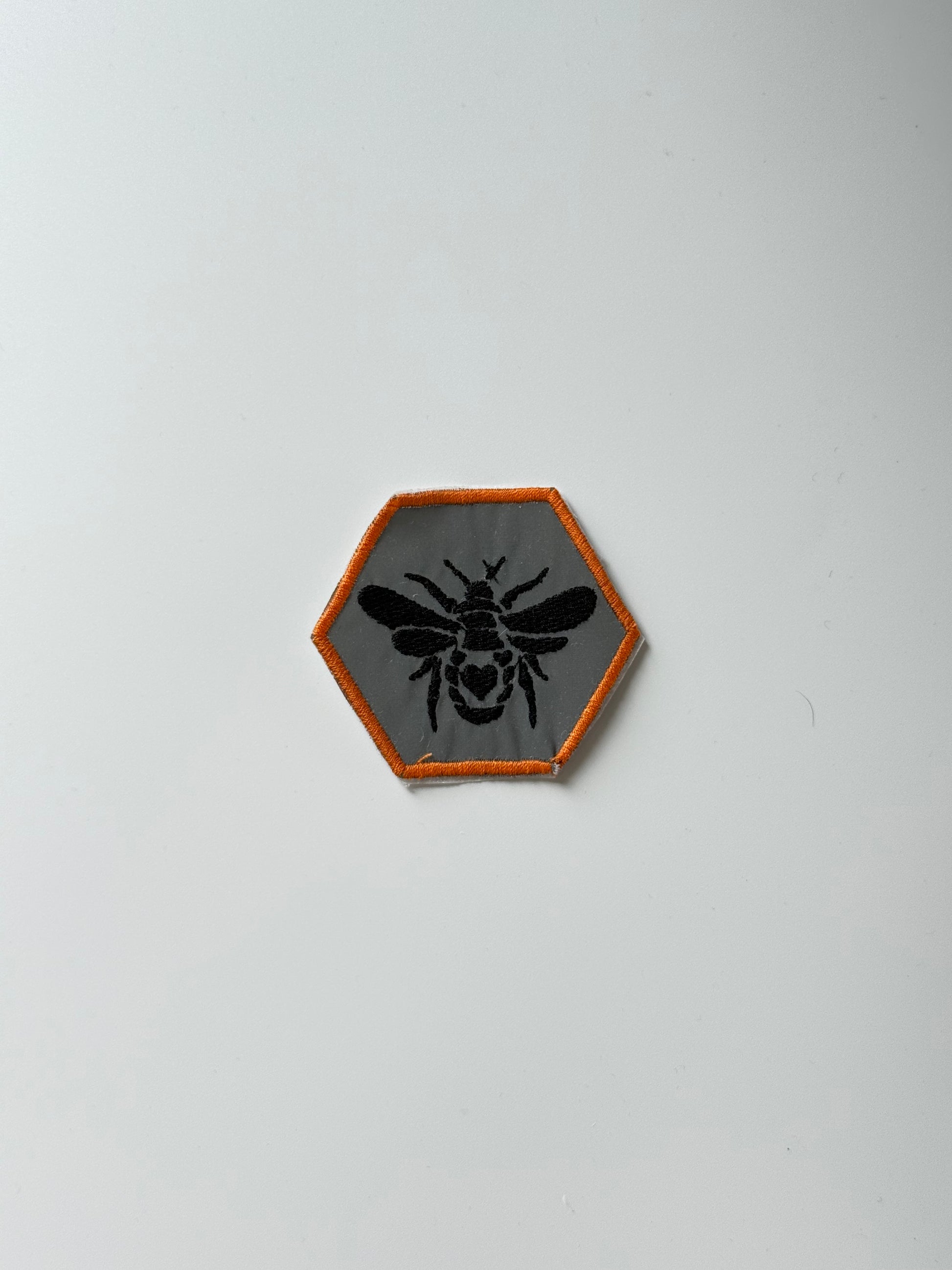 brodert på refleksstoff og formet som en sekskant – inspirert av bienes egen verden. Refleksstoffet gjør merket både unikt og funksjonelt, samtidig som det setter et stilig preg på garderoben din. Perfekt som pynt, eller som en kreativ løsning for å dekke over små hull eller flekker. Baksiden har et varmeaktiverende lim som gjør det enkelt å feste på klær eller tekstiler du allerede har.
