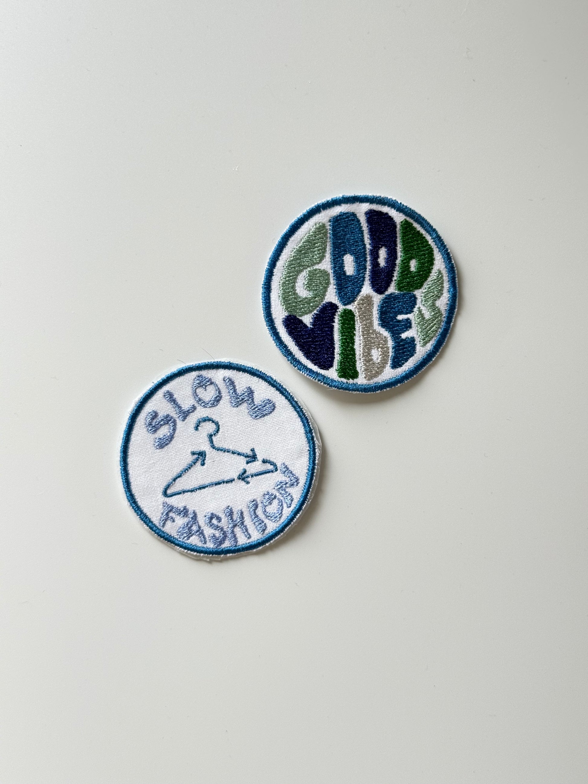 Sett et tydelig og stilfullt preg på garderoben din med dette broderte strykemerket med teksten «slow fashion» i vakre blåtoner. Merket er laget på gjenbrukstekstil i 100% bomull, og passer perfekt både som en dekorativ detalj og som en smart løsning for å dekke over små hull eller flekker. Baksiden har et varmeaktiverende lim som gjør det enkelt å feste på klær eller tekstiler du allerede har – samtidig som du løfter frem et viktig budskap om bærekraft.