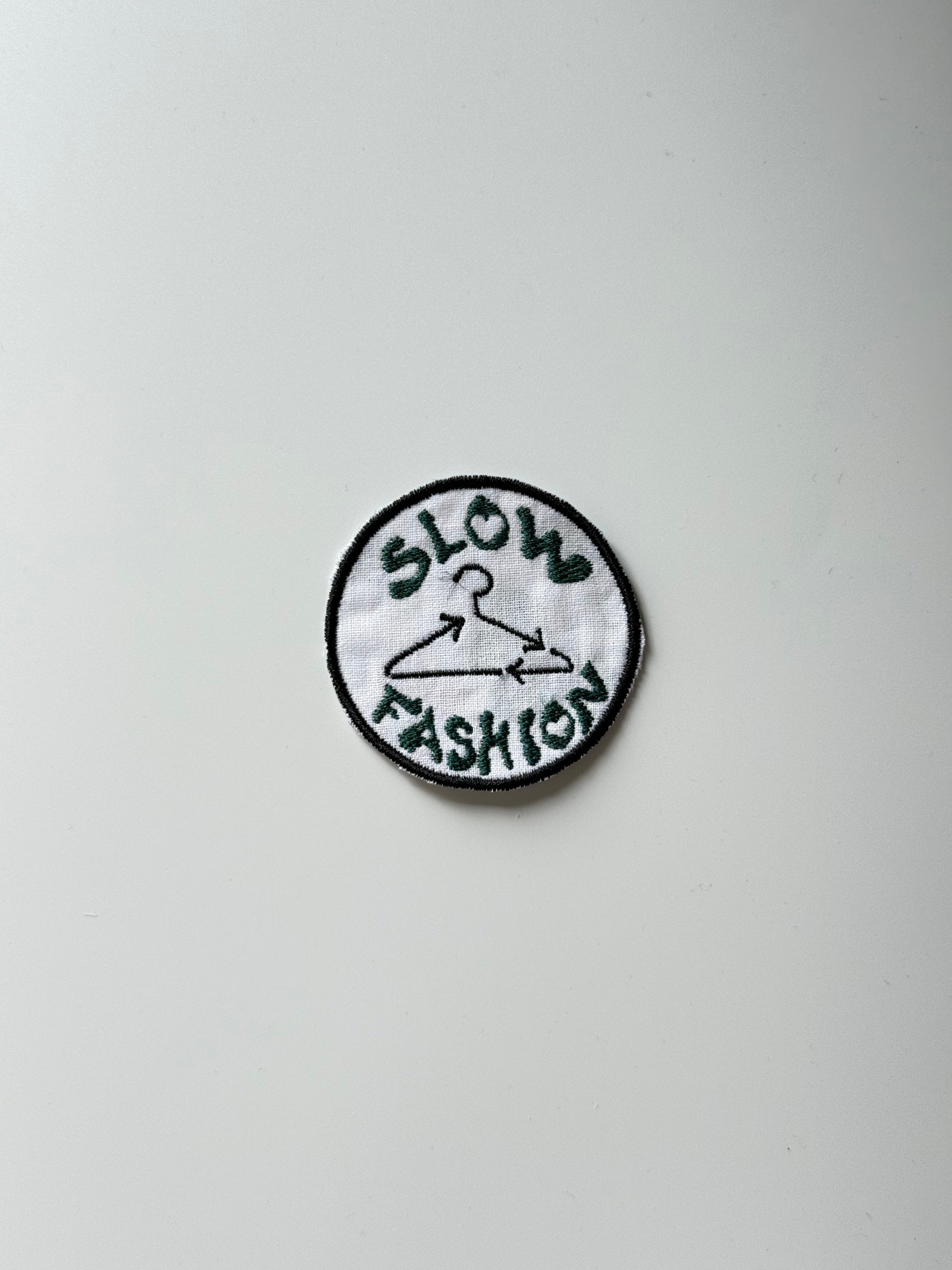 Sett et tydelig og stilfullt preg på garderoben din med dette broderte strykemerket med teksten «slow fashion» i svart og grønn. Merket er laget på gjenbrukstekstil i 100% bomull, og passer perfekt både som en dekorativ detalj og som en smart løsning for å dekke over små hull eller flekker. Baksiden har et varmeaktiverende lim som gjør det enkelt å feste på klær eller tekstiler du allerede har – samtidig som du løfter frem et viktig budskap om bærekraft.