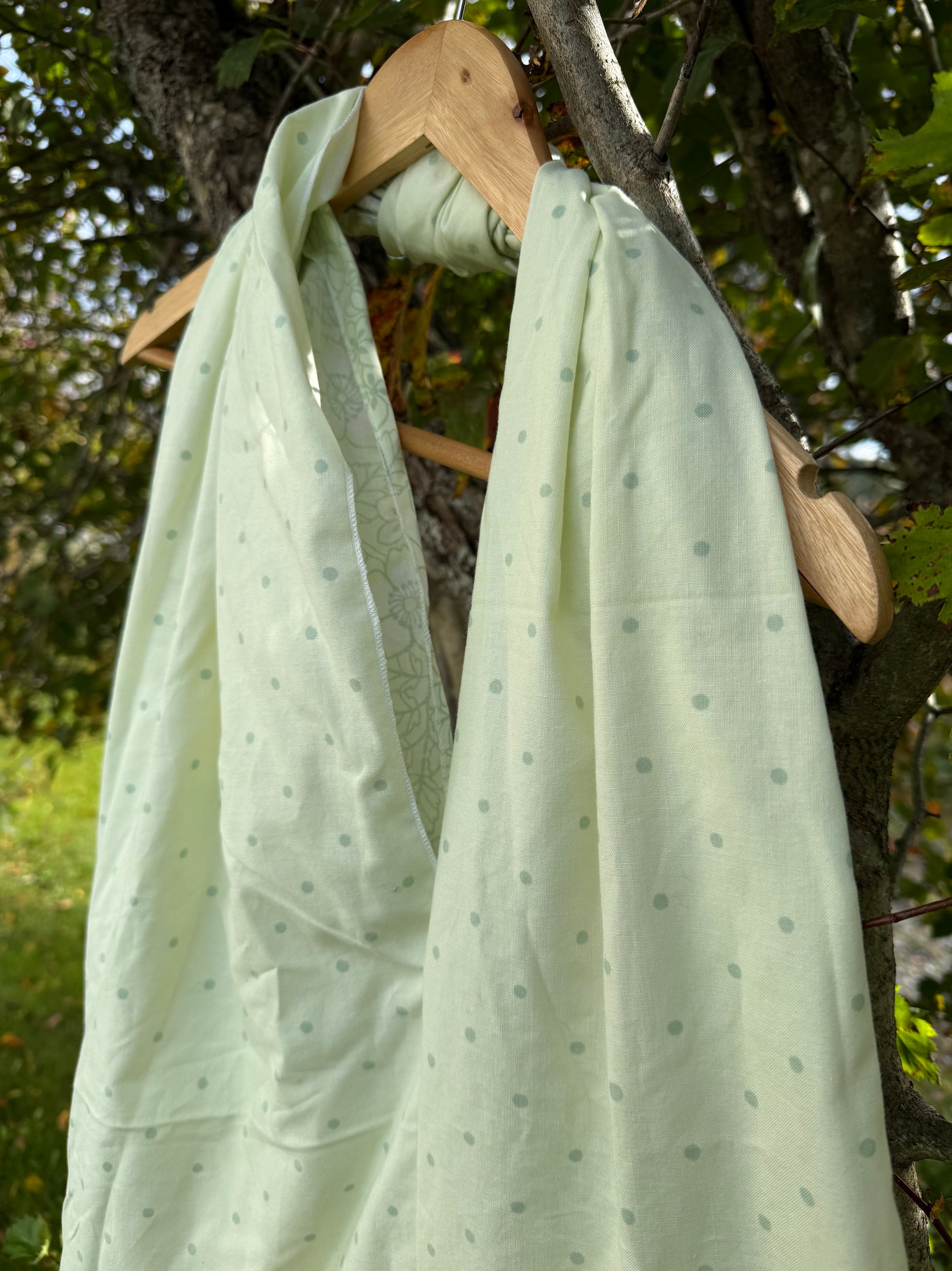 Bagen er håndlaget av meg i gjenbruksmaterialer av 100% bomull, sydd i et zero-waste design som gir null avfall i produksjonen. Dette gjør hver totebag til et bærekraftig valg for deg som ønsker å kombinere praktisk bruk med miljøbevissthet.